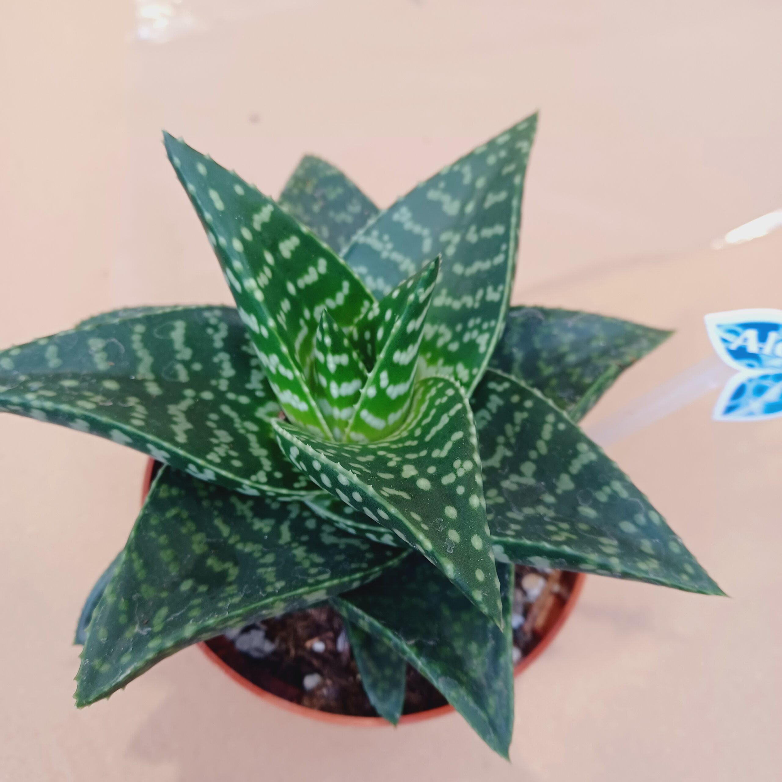 Az Aloe Tiki egy dekoratív, mintás levelű pozsgás növény, amely kis helyen is jól érzi magát, és modern stílust visz bármely helyiségbe.