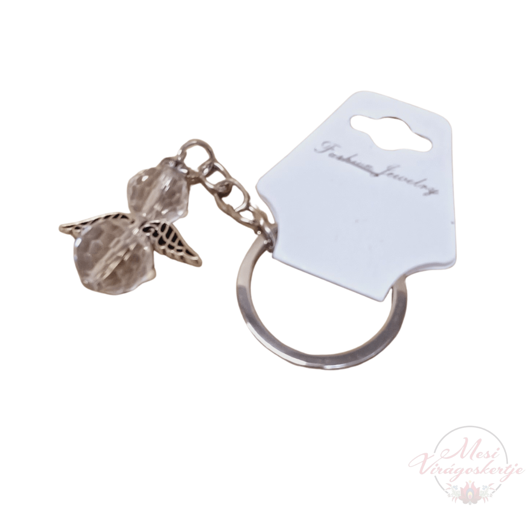 Elegáns angyalos kulcstartó áttetsző gyönggyel. Szimbolikus és megható ajándék, amely a védelem és a szeretet üzenetét hordozza.