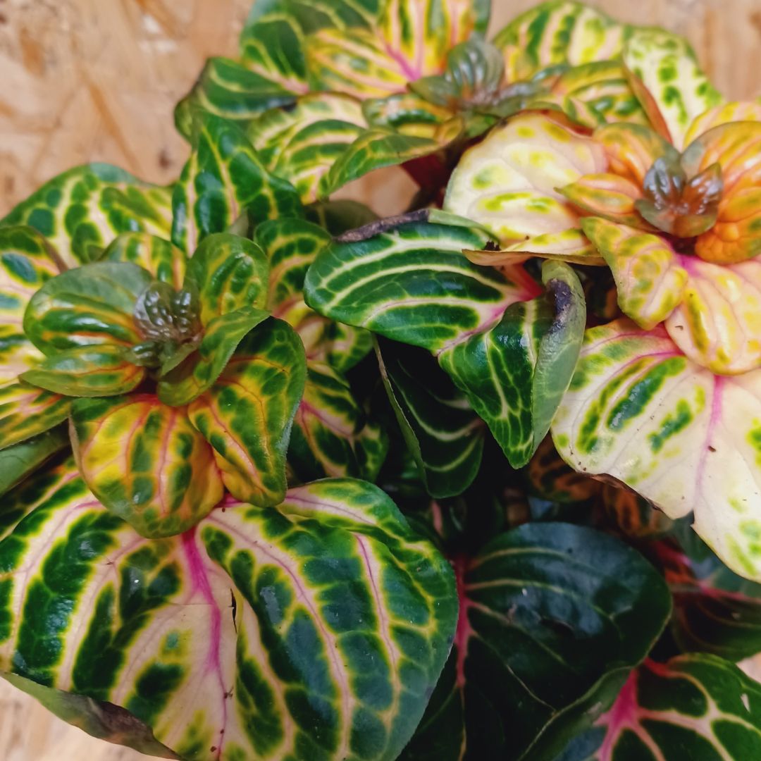 Az aranylevelű irezine ‘Funny Gold’ látványos, színes levelű dísznövény, amely élénk sárga, zöld és rózsaszínes árnyalataival különleges dekorációt ad.