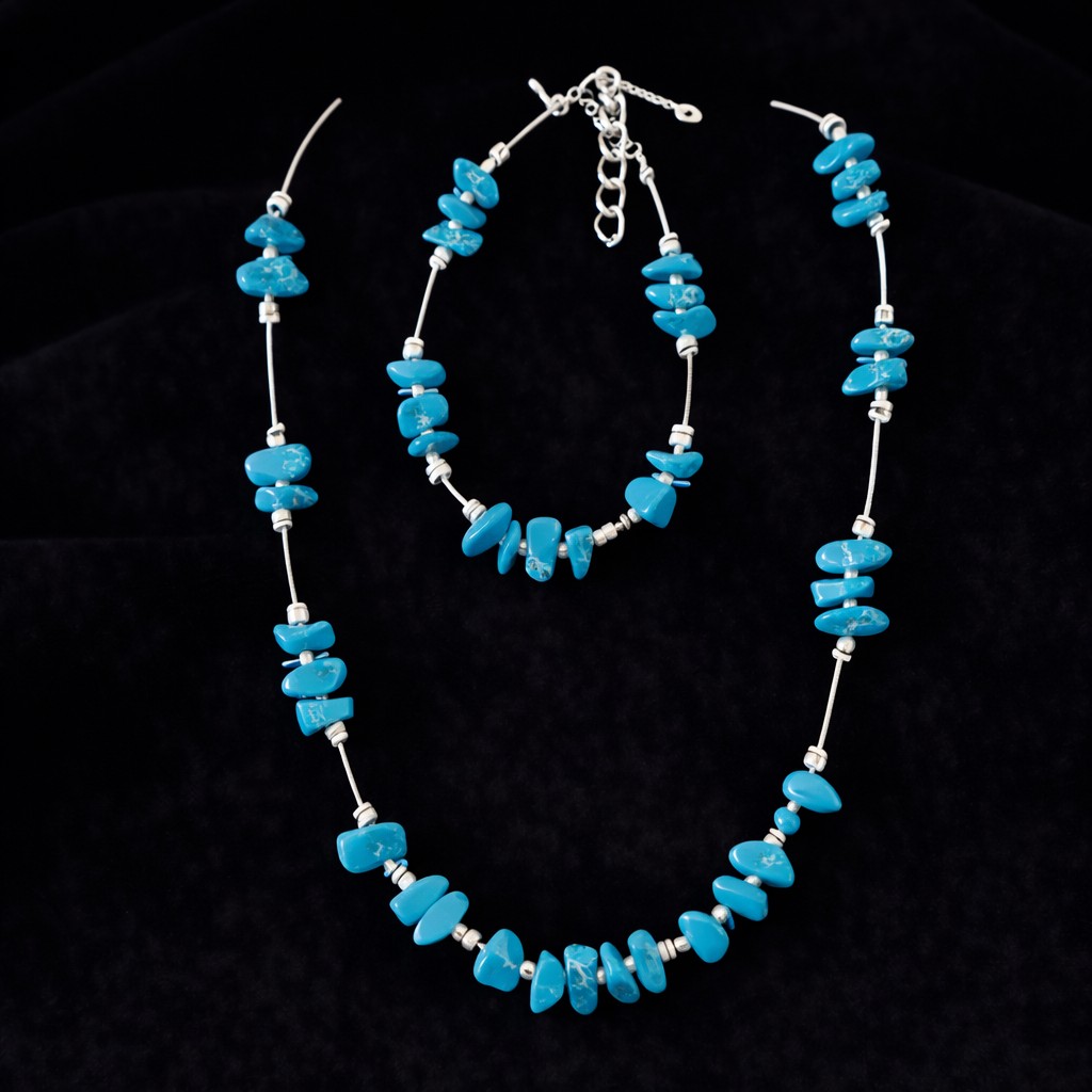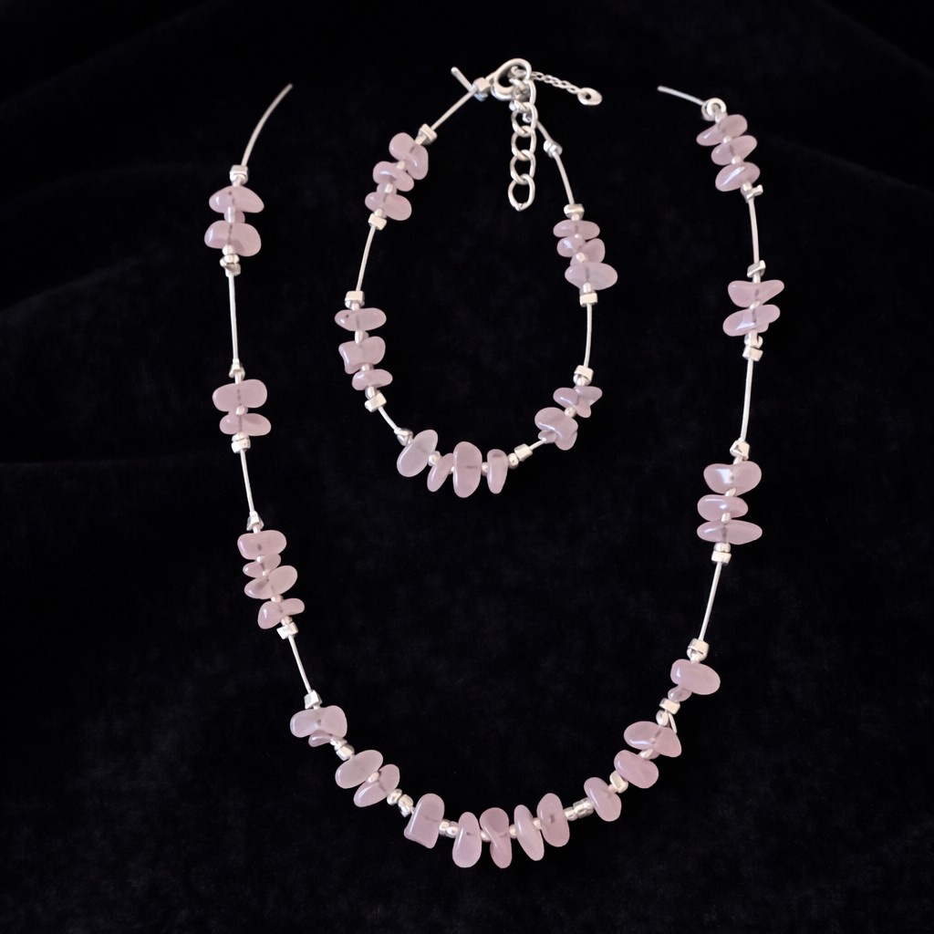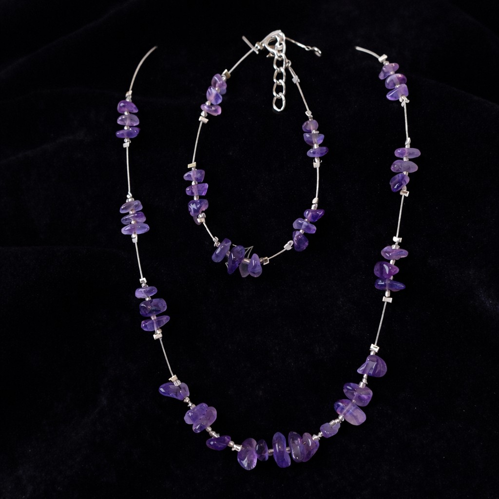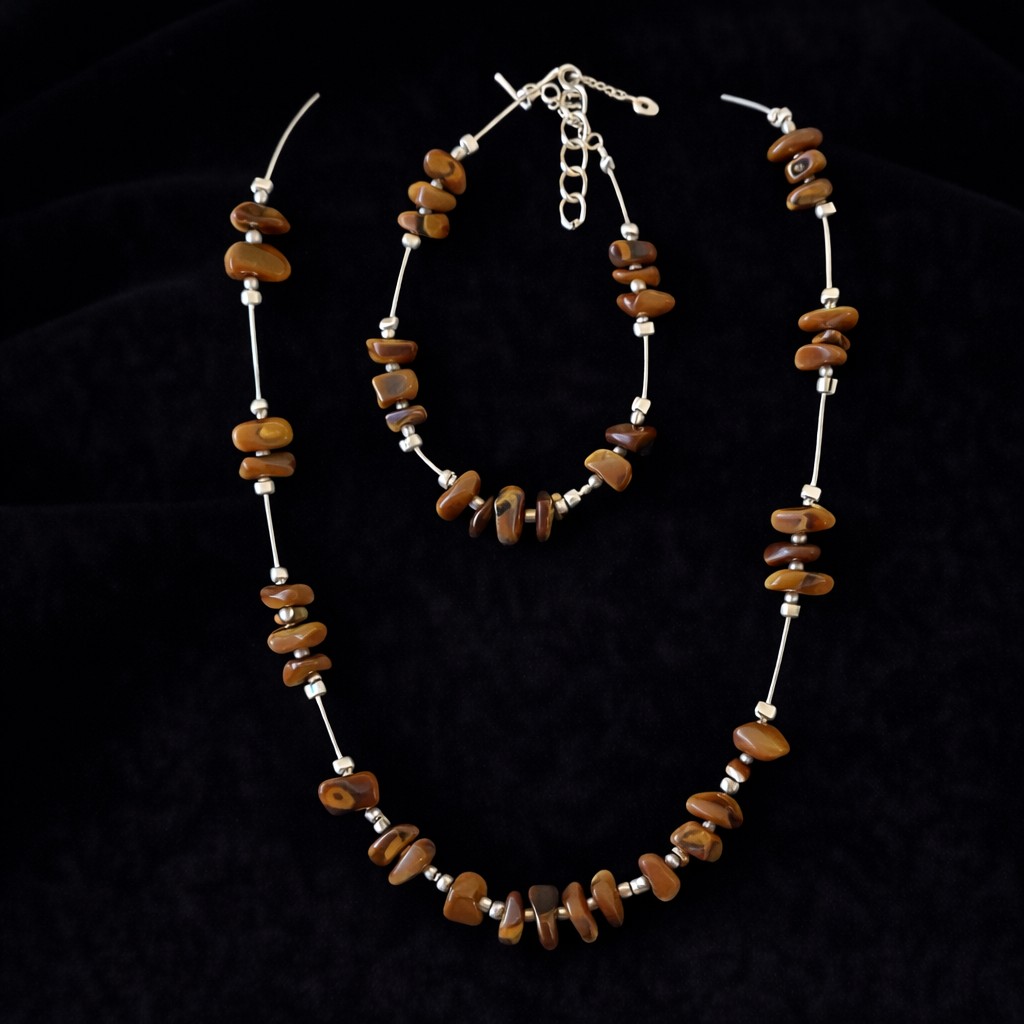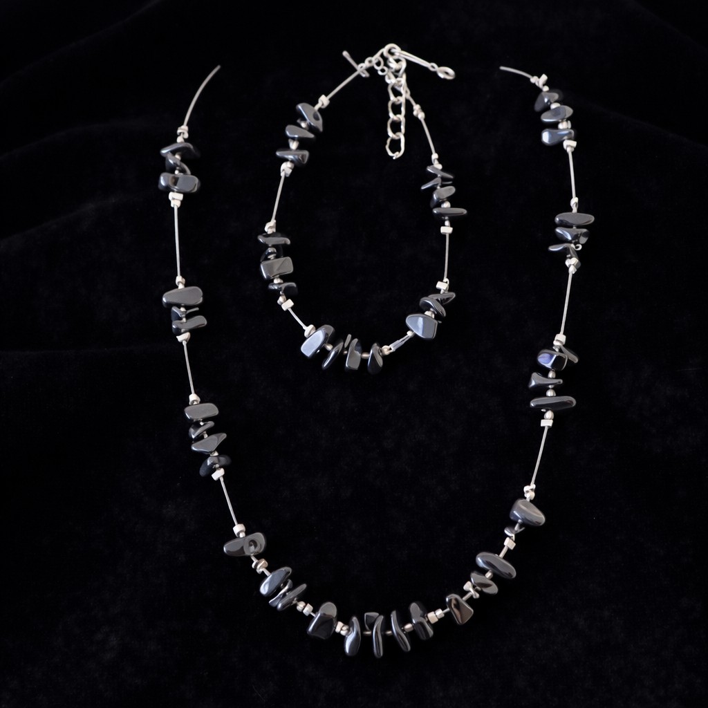 A nyaklánc és a karkötő együtt, szettben viselve egységes megjelenést ad, miközben az ásványok energiája a test több pontján is jelen van. A letisztult kialakításnak köszönhetően a szett jól illeszkedik mind hétköznapi, mind alkalmi öltözethez.
