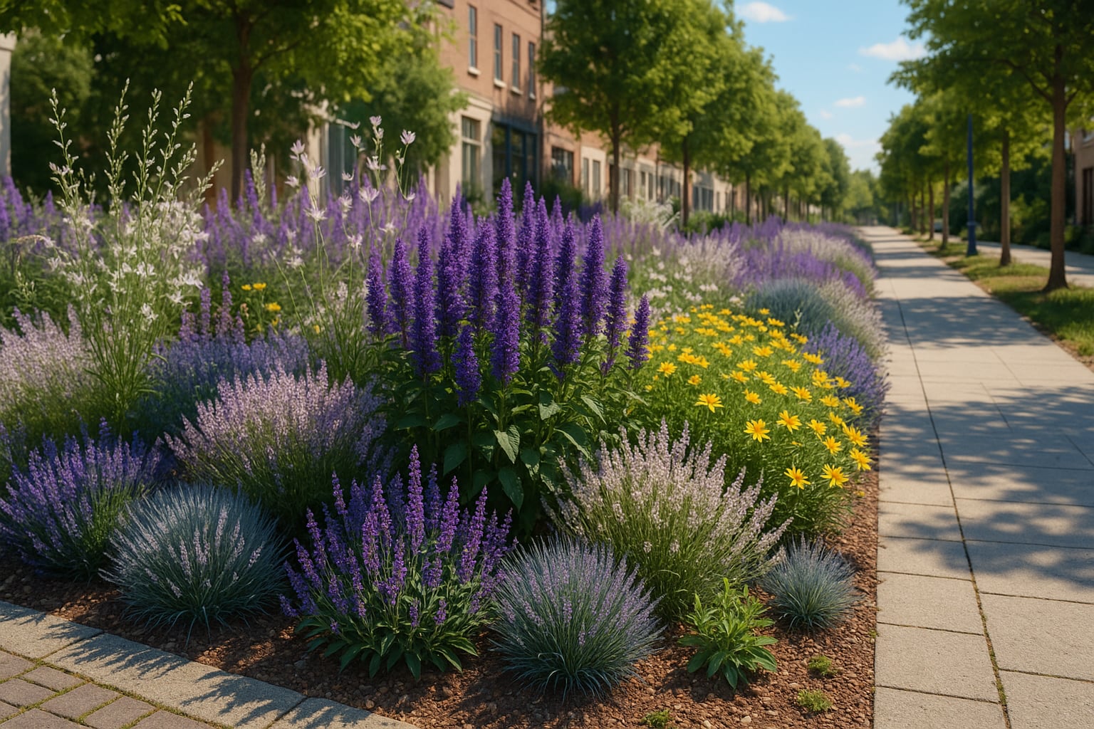 • Kerti zsálya – Salvia nemorosa: Mélylila árnyalatai és hasonló habitusa miatt kiváló társítás