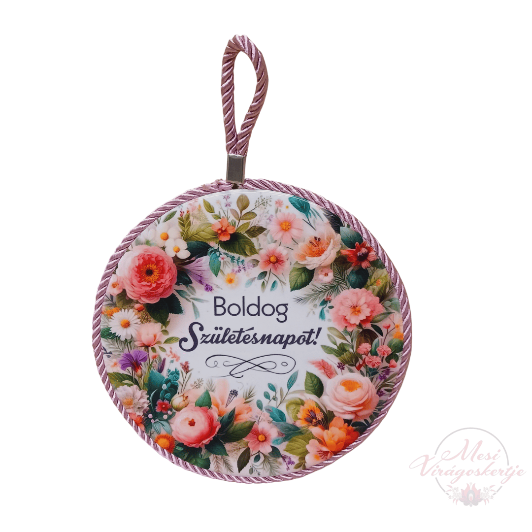 Boldog Születésnapot falidísz vagy edényalátét – virágkoszorús ajándék