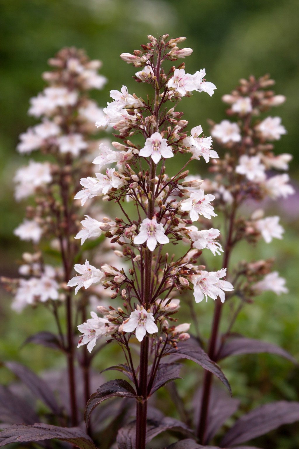 Különleges bordó levelű évelő, amely világos virágaival és kontrasztos lombjával elegáns megjelenést ad a kertnek