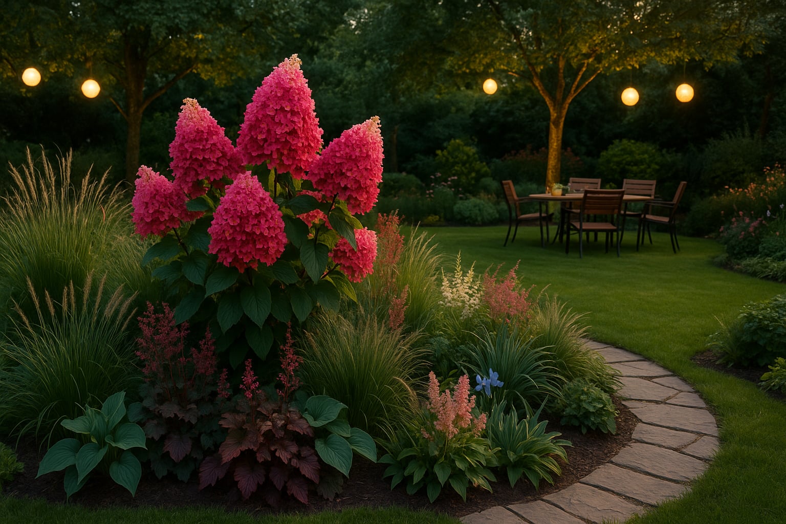 A bugás hortenzia ‘Wim’s Red’ (Hydrangea paniculata ‘Wim’s Red’) egy különleges, színváltós hortenziafajta, amely virágzata során fehérből rózsaszínbe, majd mélybordó árnyalatba vált. A kúpos, tömött virágzatok nyár közepétől őszig díszítenek, miközben a növény bokros habitusa és erőteljes növekedése szoborszerű megjelenést kölcsönöz neki. Szoliterként ültetve kiemelkedik a kert kompozíciójából, és önmagában is elegáns fókuszpontot teremt. Könnyen gondozható, jól tűri a magyarországi teleket, és napos vagy félárnyékos helyen is szépen fejlődik.