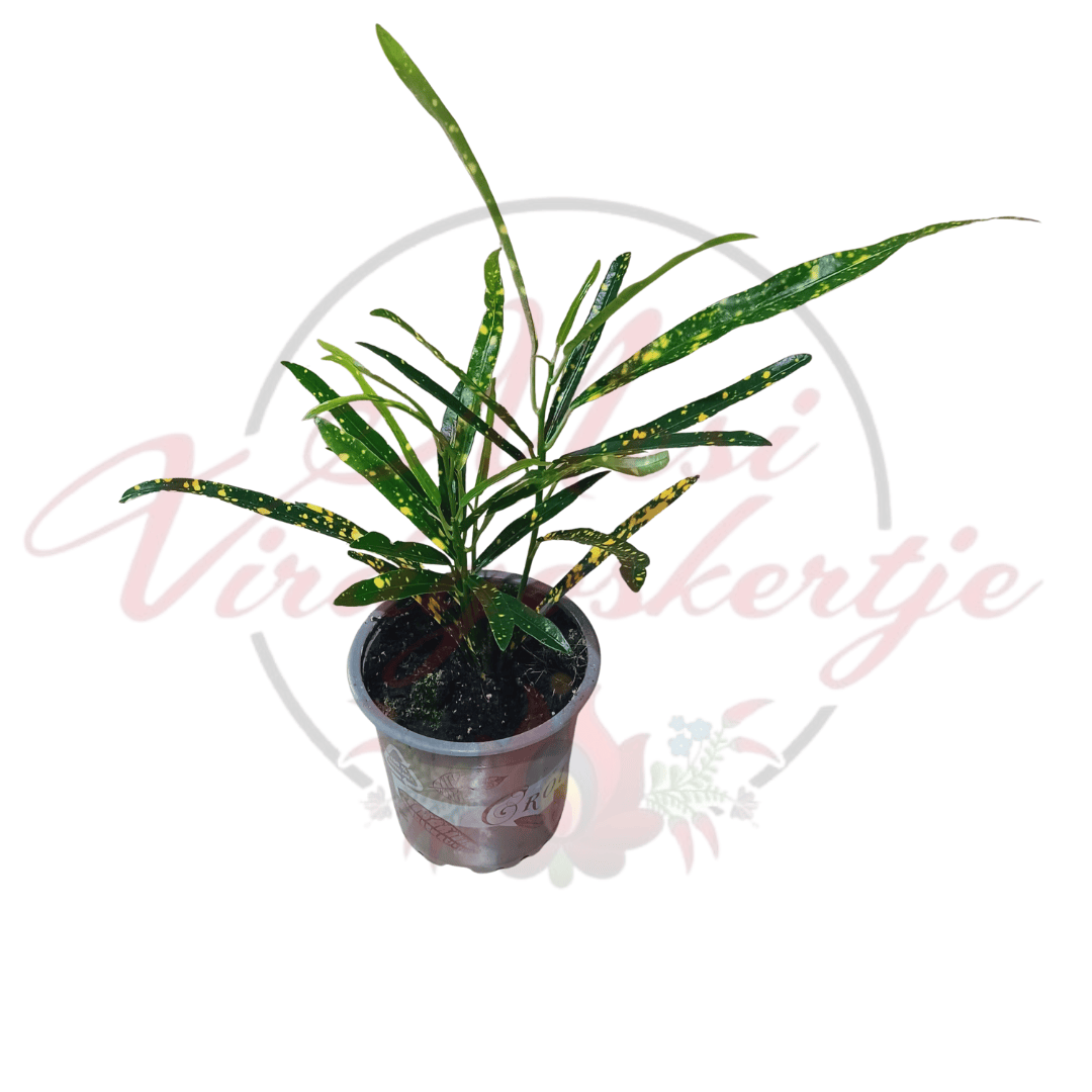 A Croton – Codiaeum variegatum (kicsi) trópusi eredetű, színes levelű dísznövény. Kis mérete miatt ideális polcra, ablakpárkányra vagy íróasztalra.