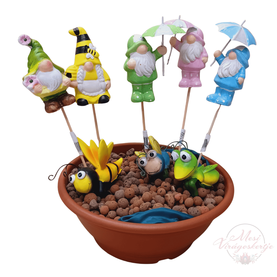 Aranyos manó figurák cserépbe vagy virágládába szúrva. Vidám, kedves hangulatot visz kertedbe vagy teraszodra. Többféle színben kapható.