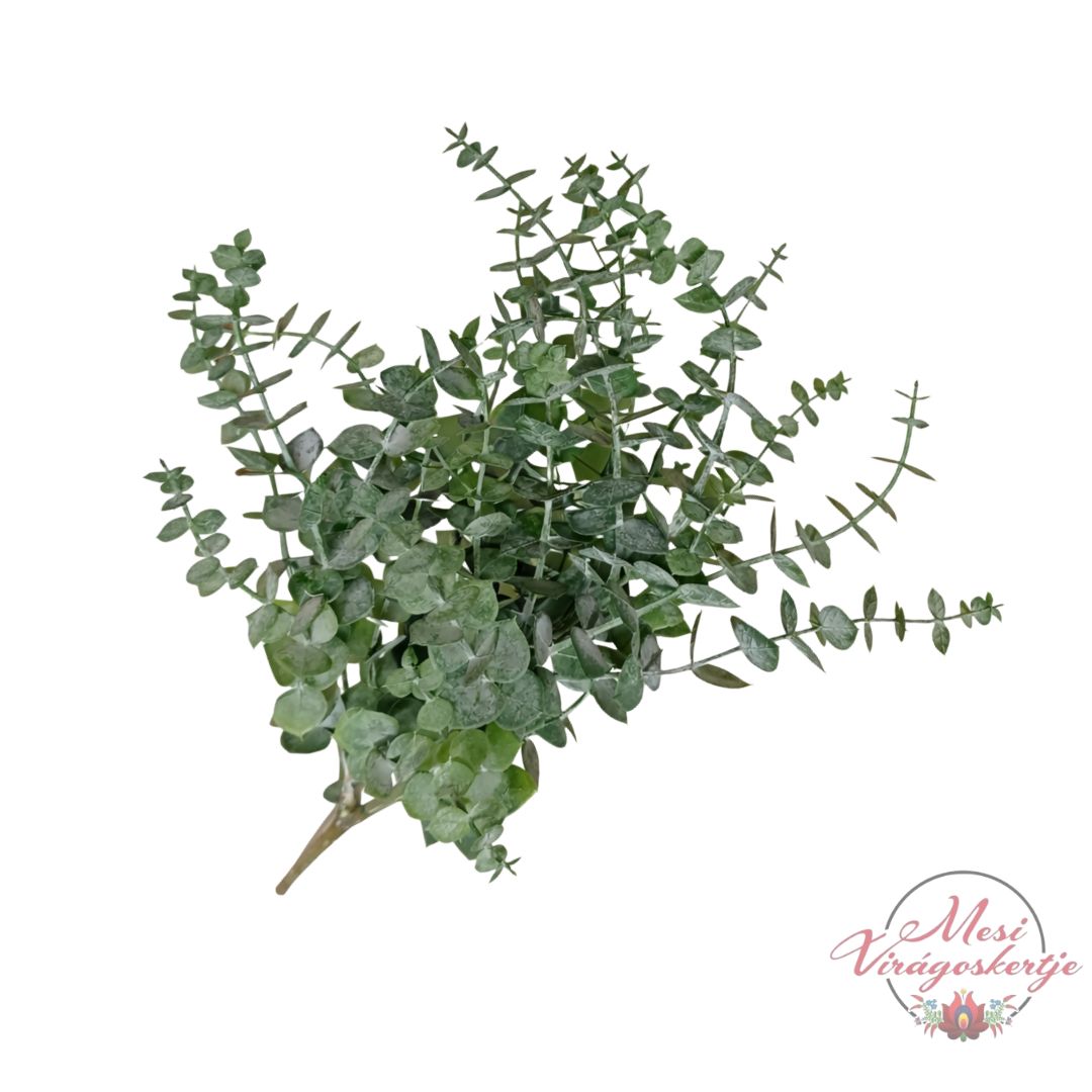 Élethű megjelenésű dekoratív eukaliptusz műág, amely természetes zöld színével friss, modern hangulatot teremt bármely térben.
