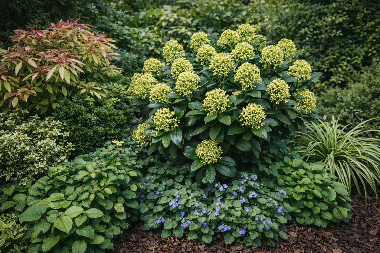 A ‘White Globe’ fajta kiválóan illeszkedik savanyú talajt kedvelő növények közé, és remek alapnövénye árnyéki, természetes hangulatú kerteknek.