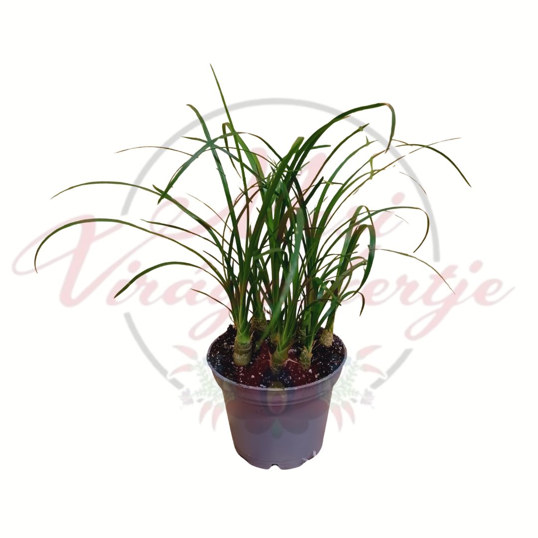 Az elefánttalp – Beaucarnea recurvata mini változata különösen praktikus és látványos választás, hiszen egyetlen cserépben több különálló növényt tartalmaz. A jellegzetesen megvastagodott törzs (vízraktározó tövű rész) és a hosszú, ívesen lehajló levelek játékos, modern megjelenést kölcsönöznek a növénynek.