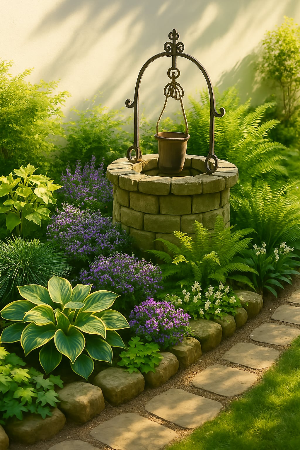 • Árnyékliliom – Hosta spp.: dús lombja és levélmintázata jól ellenpontozza a páfrány finom leveleit