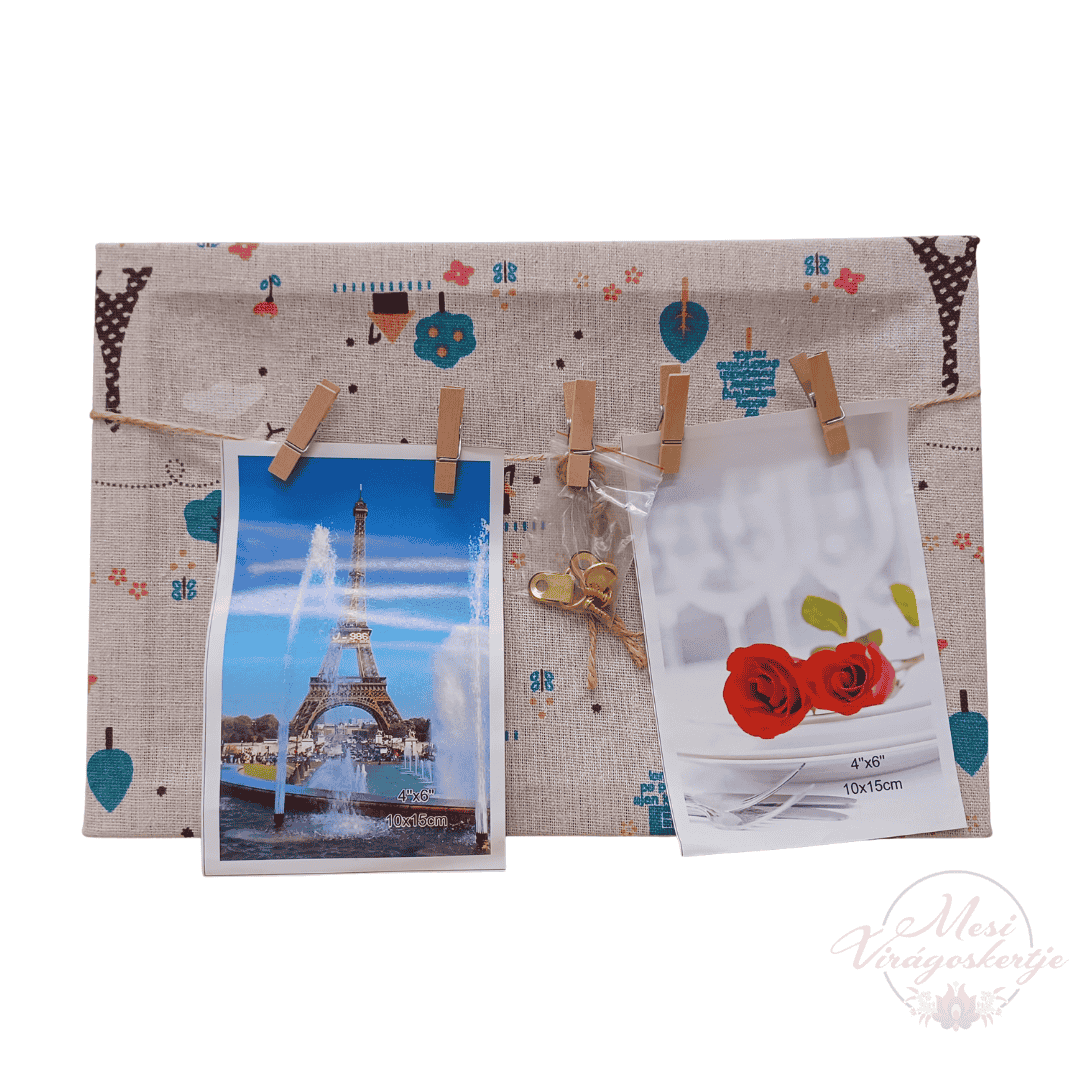 Kedves mintás fali fényképtartó mini csipeszekkel, amelyre könnyen rögzíthetsz fotókat, üzeneteket vagy apró emlékeket.