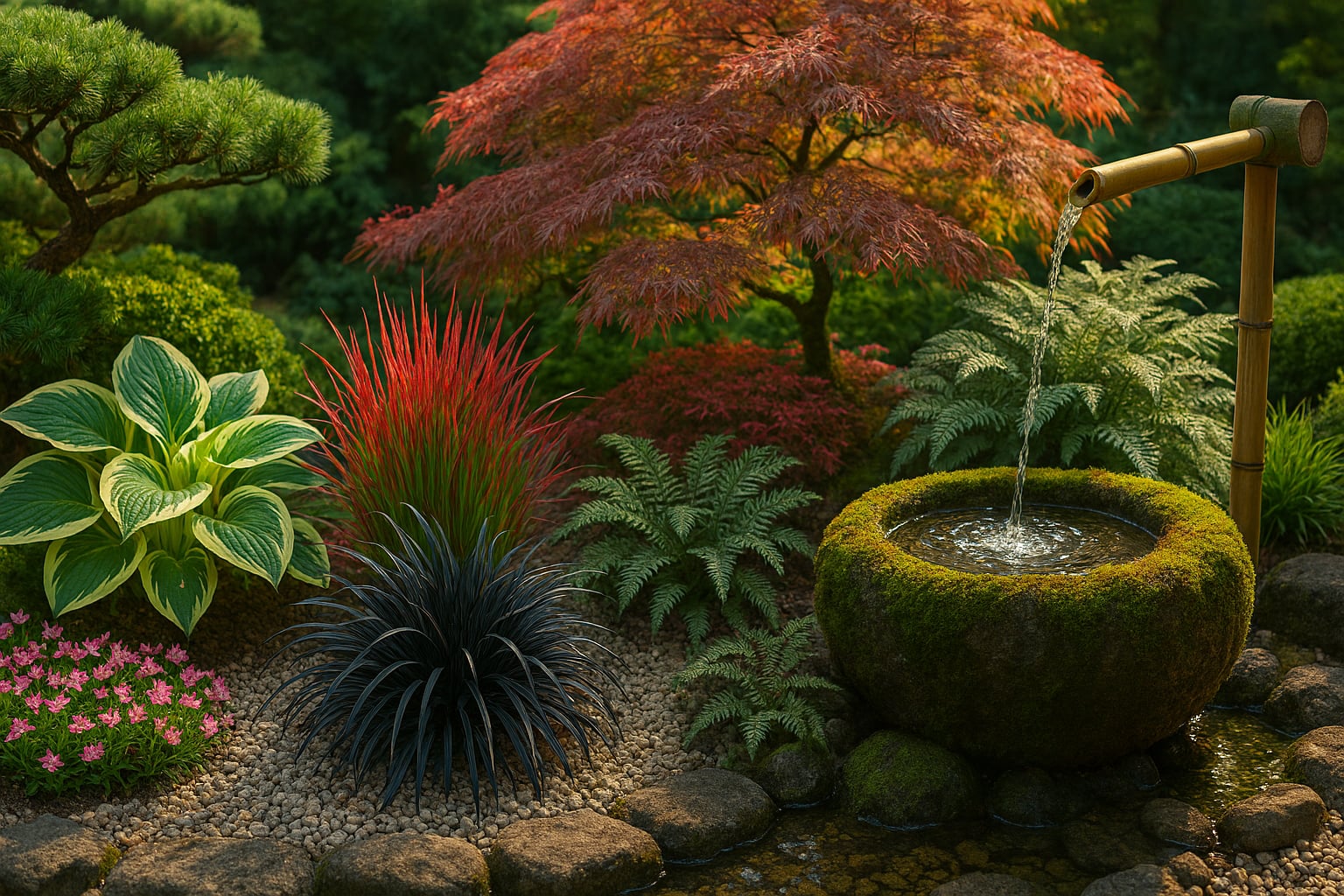 🌸 Növénytársítási ötlet – Japánkert stílusban