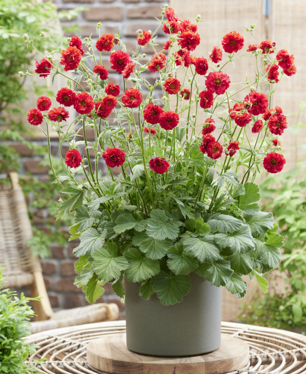 • Macskamenta – Nepeta faassenii: könnyed lombozata kiemeli a geum élénk virágait
