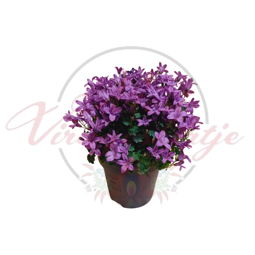 A harangvirág – Campanula kedvelt, romantikus megjelenésű dísznövény, amely apró, harang alakú virágairól kapta nevét. Gazdag virágzása és kompakt formája miatt kiváló választás cserepes növényként, akár beltérben, akár védett kültéri helyen.