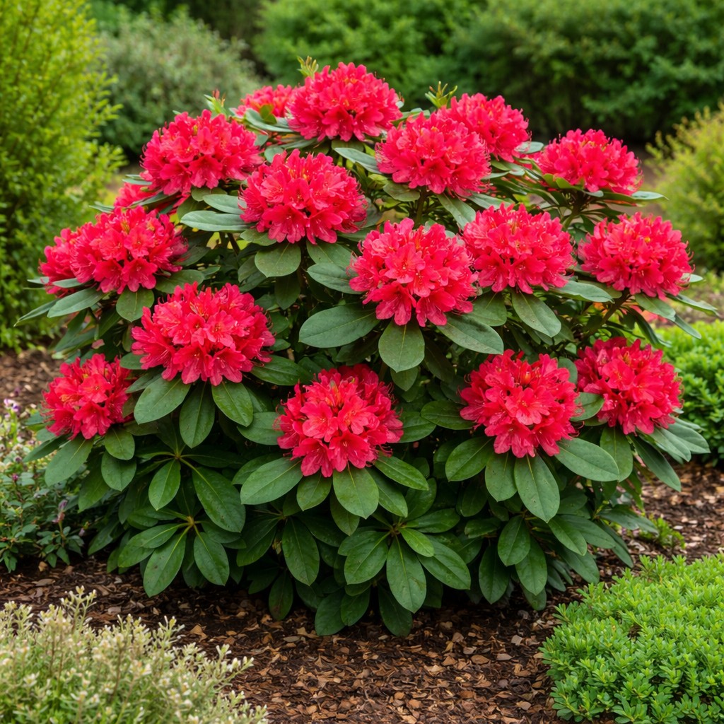 Az ‘Alpenrose Dr. H.C. Dresselhuys’ fajta intenzív piros virágai tavasszal jelennek meg nagy tömegben, és lenyűgöző látványt nyújtanak a sötétzöld, fényes lomb előtt. Kompakt, bokros növekedésű növény, amely kiváló választás díszkertekbe, előkertekbe vagy akár félárnyékos területek beültetésére.
