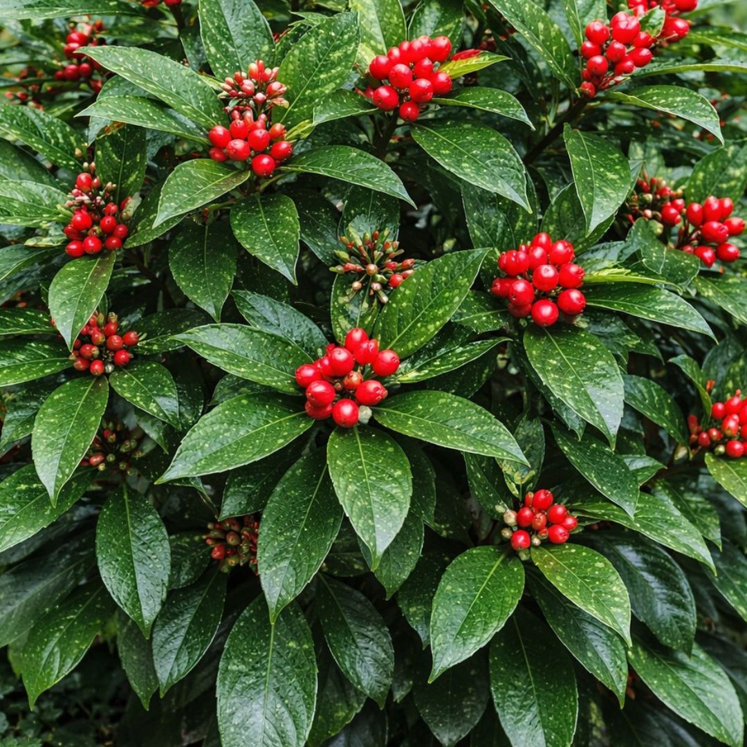 A japán babérsom ‘Rozannie’ (Aucuba japonica) egy kompakt, örökzöld díszcserje, amely fényes leveleivel és látványos piros terméseivel egész évben díszíti a kertet. Árnyékos helyek kiváló növénye, kevés gondozással is szépen fejlődik.