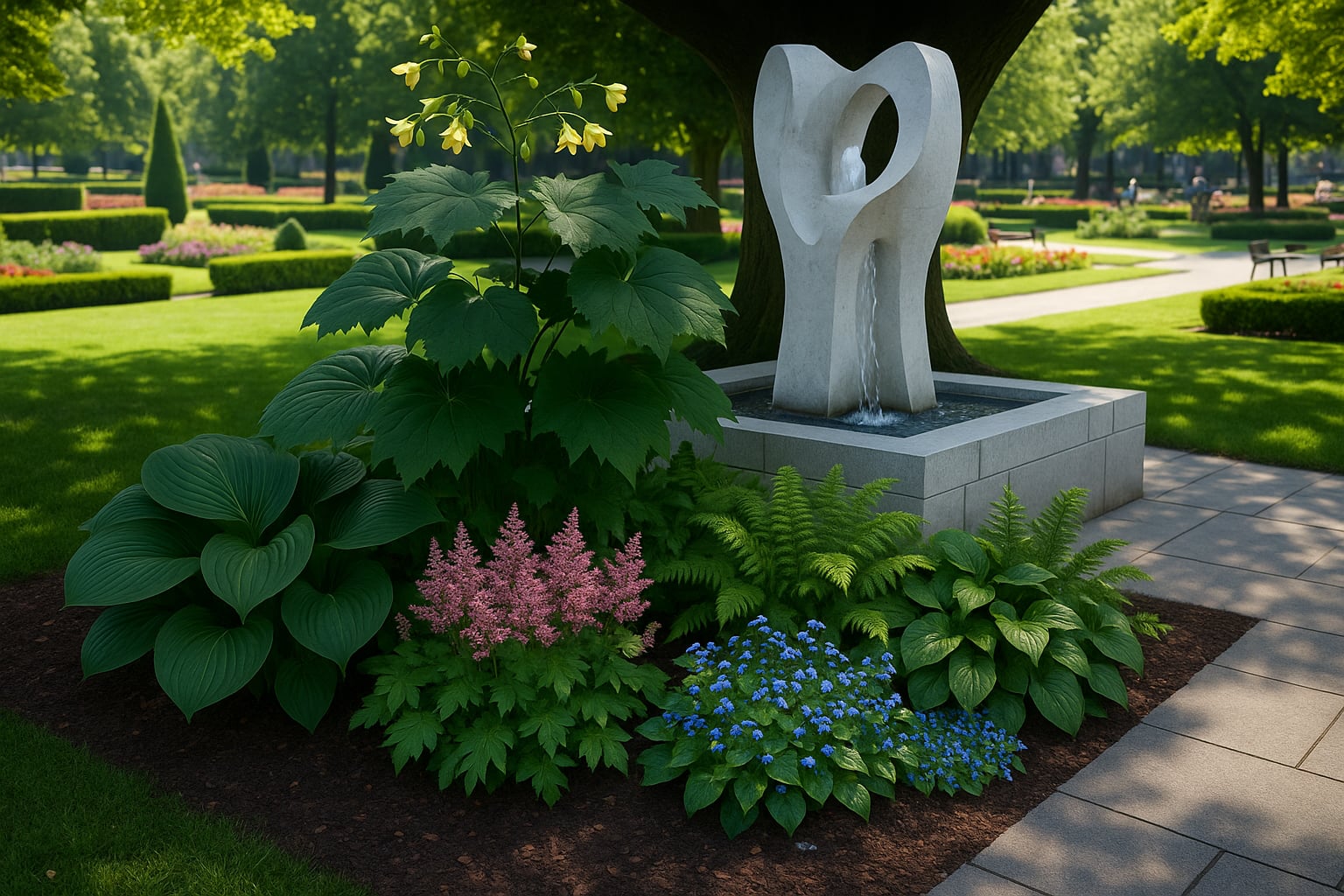 • Fény: Társítsuk árnyékkedvelő növényekkel, mint a Hosta (árnyékliliom) vagy a Farfugium japonicum (óriáslapu)