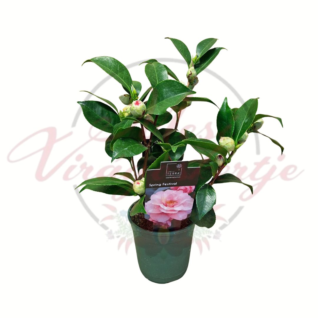 Kamélia többféle színben, 12-es cserépben kapható örökzöld díszcserje, amely elegáns virágaival és fényes lombozatával díszíti a kertet vagy teraszt.