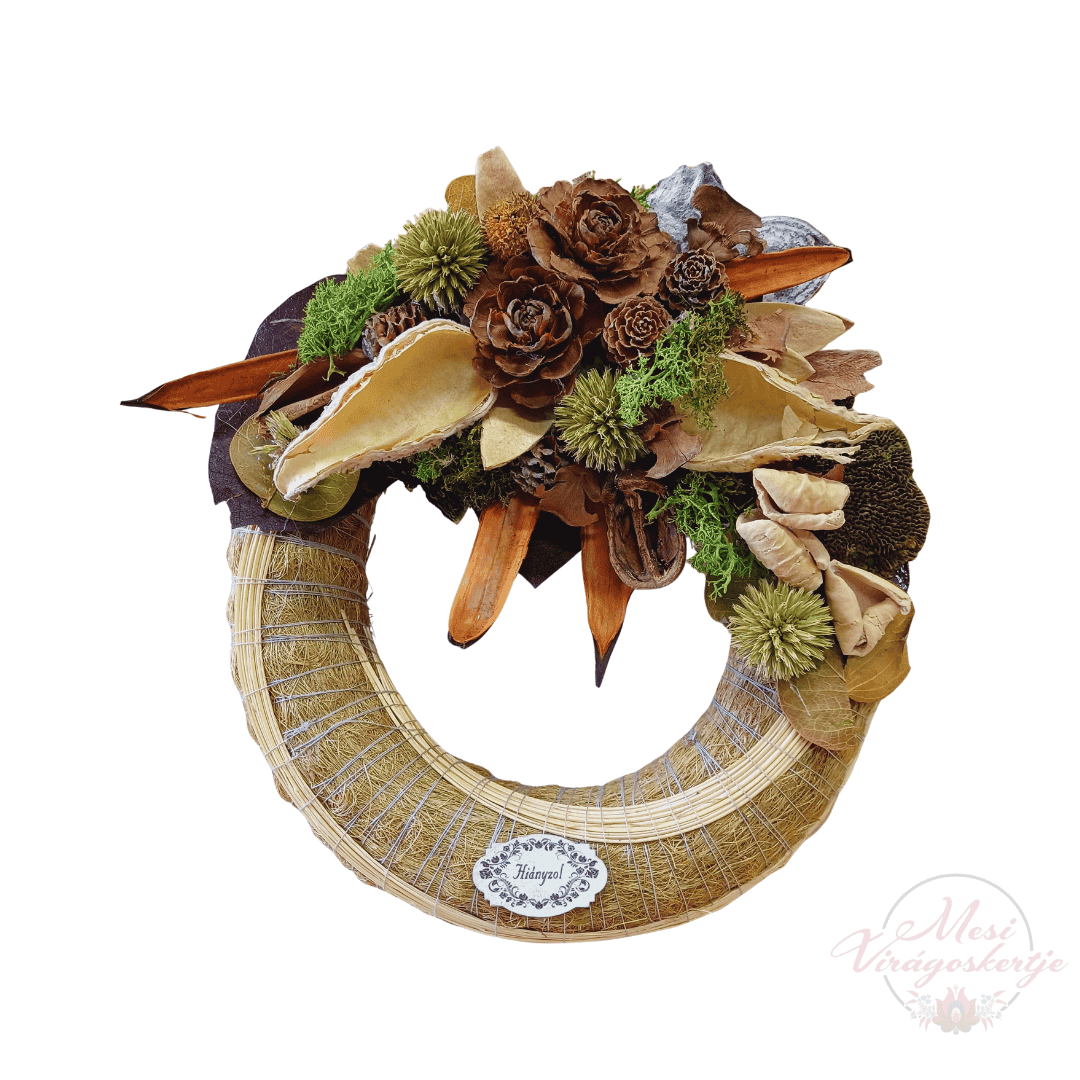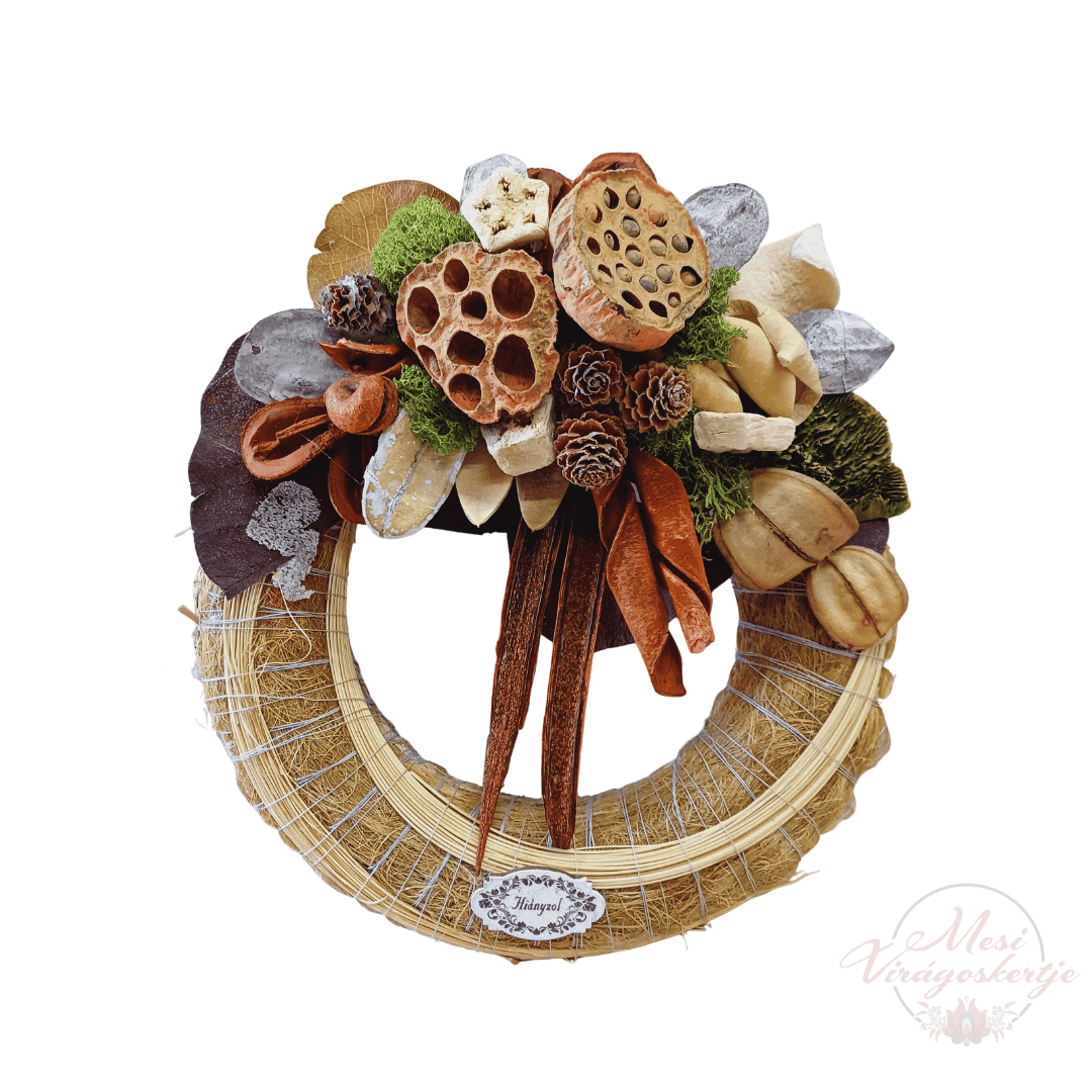 Kerek szárazkoszorú 27 cm – Szárazvirág díszítéssel