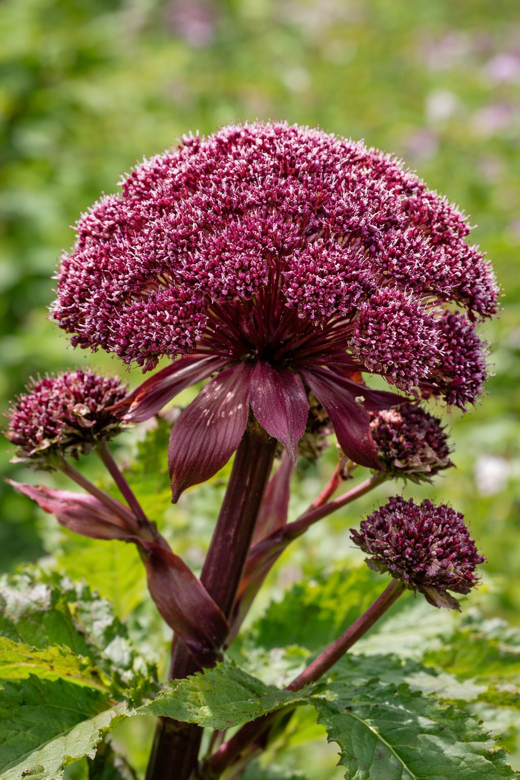 A koreai angyalgyökér (Angelica gigas) egy igazán különleges megjelenésű évelő dísznövény, amely mély bordó, gömb alakú virágzatával azonnal magára vonja a figyelmet. Elegáns, egzotikus hatást kelt, így kiváló választás díszkertekbe, évelő ágyásokba vagy természetközeli kertrészekbe.