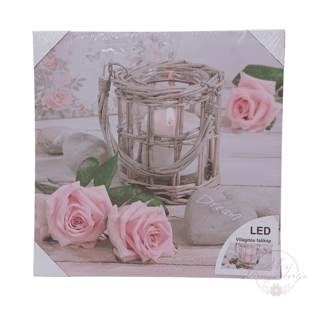 A rózsás mécsest ábrázoló LED falikép meleg fénye és lágy színei harmóniát visznek a térbe. Tökéletes ajándék és stílusos fali dekoráció.