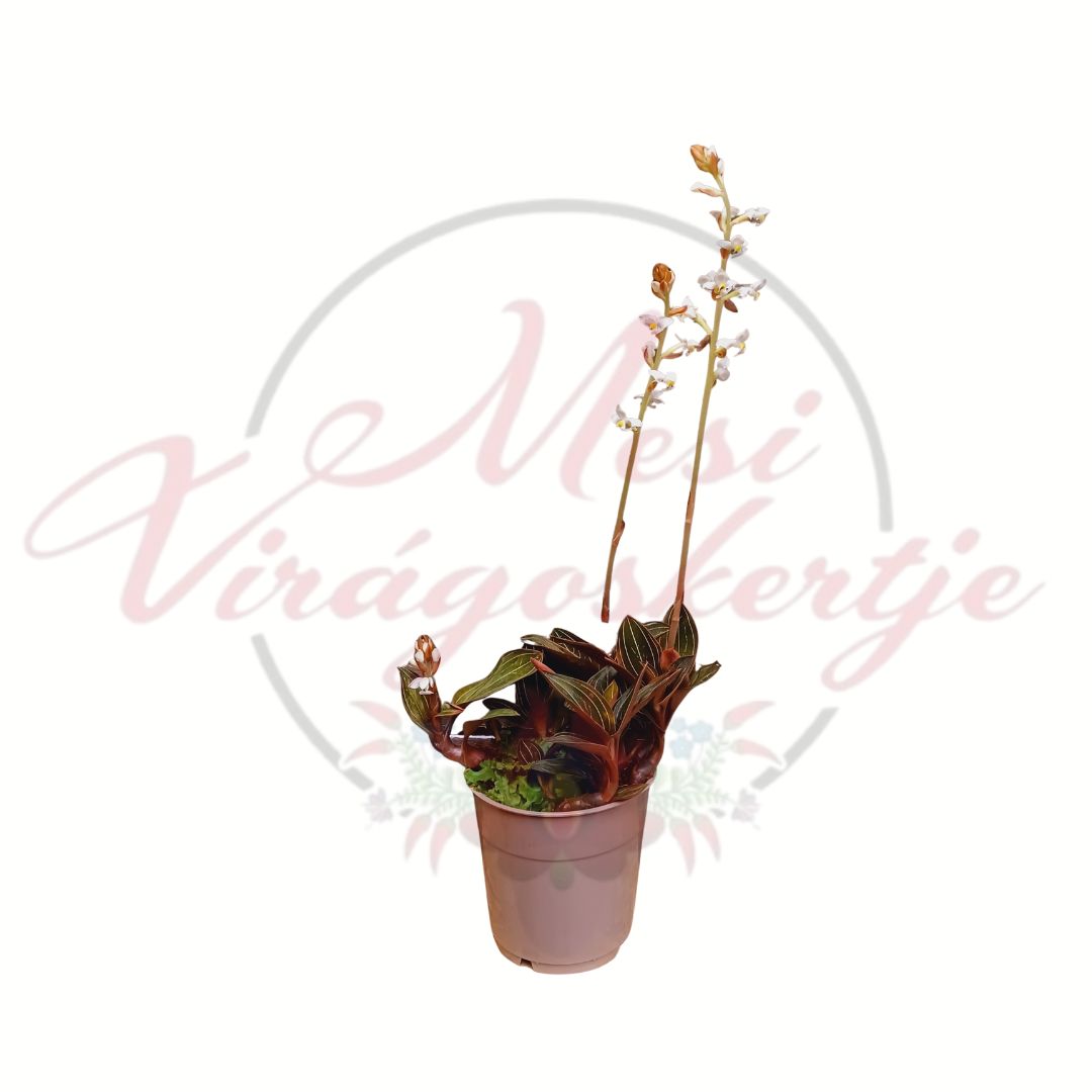 A Ludisia discolor – közismert nevén ékszerorchidea – különleges, bársonyos leveleivel és finom arany-vöröses erezetével az egyik legdekoratívabb szobanövény. Más orchideákkal ellentétben a Ludisia elsősorban leveleivel díszít, virágai pedig elegáns, apró fehér fürtökben jelennek meg. Könnyebben tartható, mint a legtöbb orchideafaj, és jól viseli a szobai körülményeket is, ha megfelelő páratartalmat és félárnyékos helyet biztosítunk. Terráriumban, floráriumban vagy polcon elhelyezve is rendkívül látványos, modern hangulatot ad bármelyik térnek.