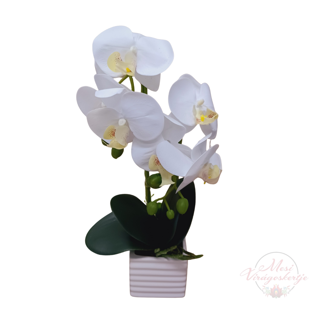 Gyönyörű, élethű mű orchidea beépített LED világítással, kerámia kaspóban. Lágy, hangulatos fényt ad, amely otthonod bármely pontját meghitté varázsolja.