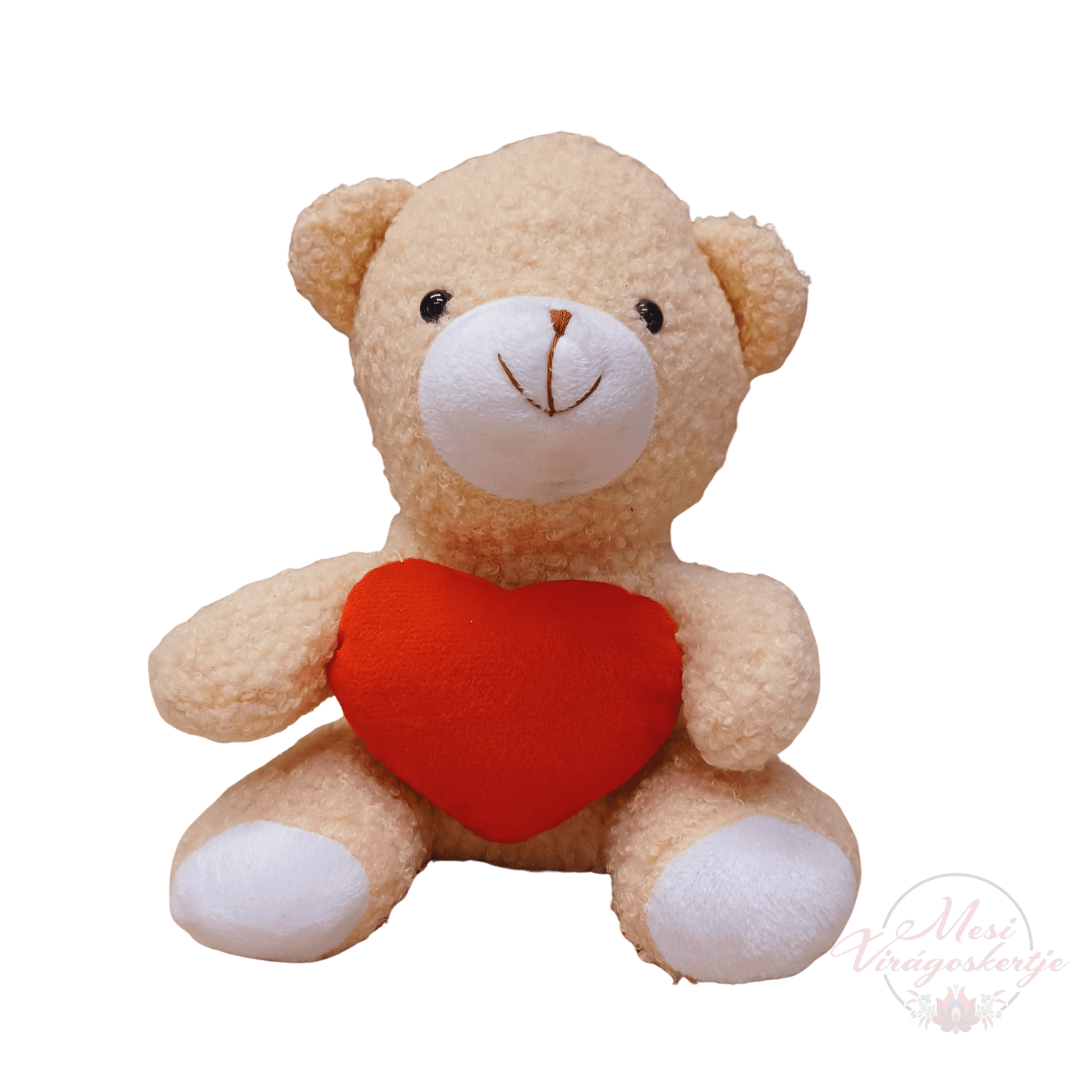 Aranyos plüss maci, aki piros szívet tart a kezében. Puha, ölelni való ajándék szeretteidnek bármilyen alkalomra, kedvességgel és szeretettel.