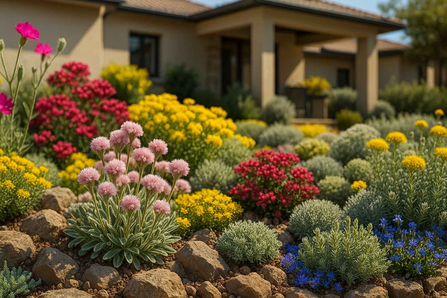 • Szürke cipruska (Santolina chamaecyparissus) – aromás, ezüstös lombozata és sárga virágai természetes mediterrán hangulatot teremtenek.