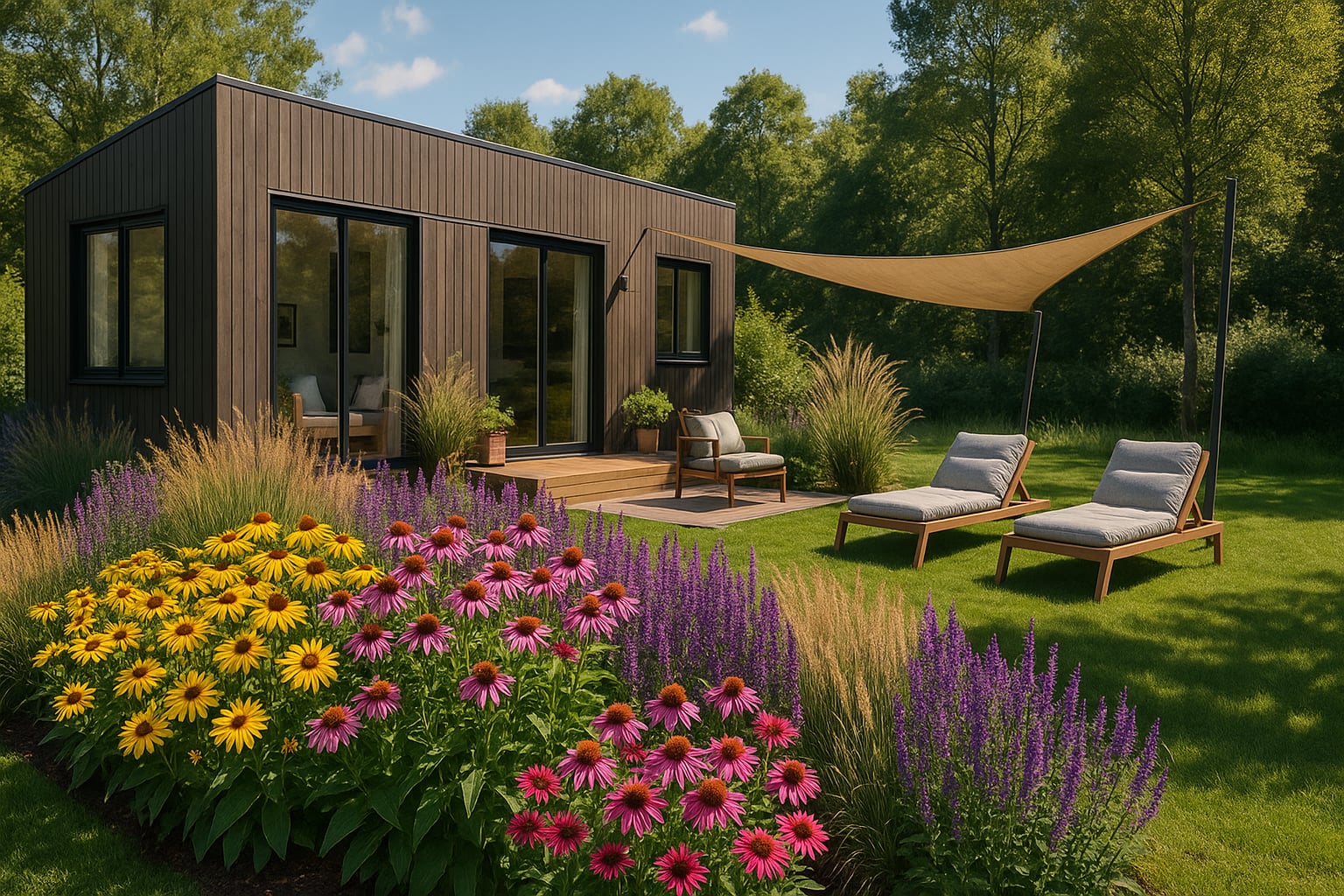Ültessük együtt Echinacea purpurea (bíbor kasvirág), Calamagrostis acutiflora (díszperje) és Salvia nemorosa (ligeti zsálya) fajtákkal. Ez a kombináció nemcsak színpompás, hanem méh- és lepkebarát is, ráadásul egész nyáron át virágzó, alacsony fenntartású ágyást eredményez. Inspirációként készítettünk egy beültetési látványtervet, melyet megtalálsz a képek között.