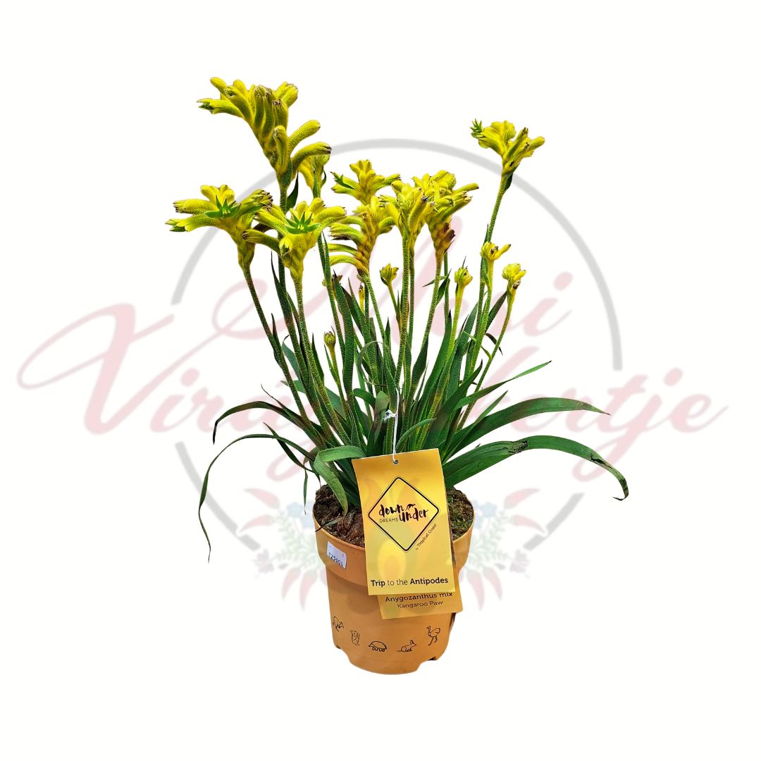 A sárga virágú kengurumancs (Anigozanthos) egy igazán különleges, egzotikus dísznövény, amely Ausztráliából származik. Nevét jellegzetes, „kengurumancsra” emlékeztető, bársonyos tapintású virágairól kapta, amelyek élénk sárga színükkel azonnal magukra vonják a figyelmet.