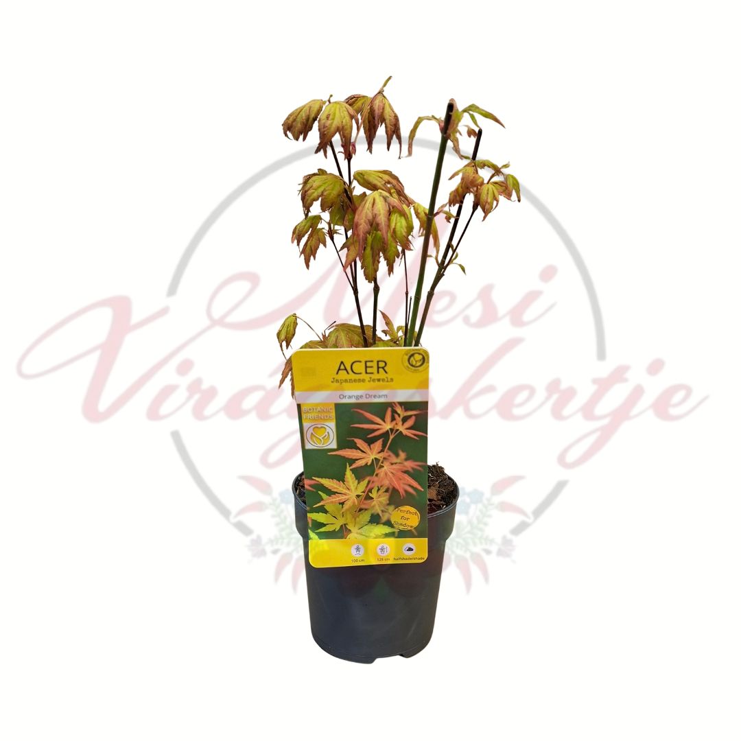 Az Acer palmatum ‘Orange Dream’ egy különleges, változó lombszínű japán juharfajta. Tavasszal narancsos tónusokkal fakad, nyáron friss sárgászöld leveleket visel, ősszel pedig arany-sárga árnyalatokban pompázik. Kisebb termetű, 1,5–2 méteres magasságot elérő növény, így előkertbe, sziklakert mellé vagy nagyobb konténerbe is kiváló választás.