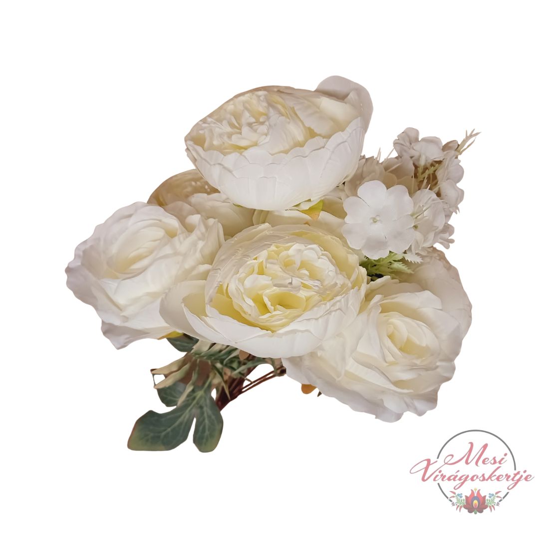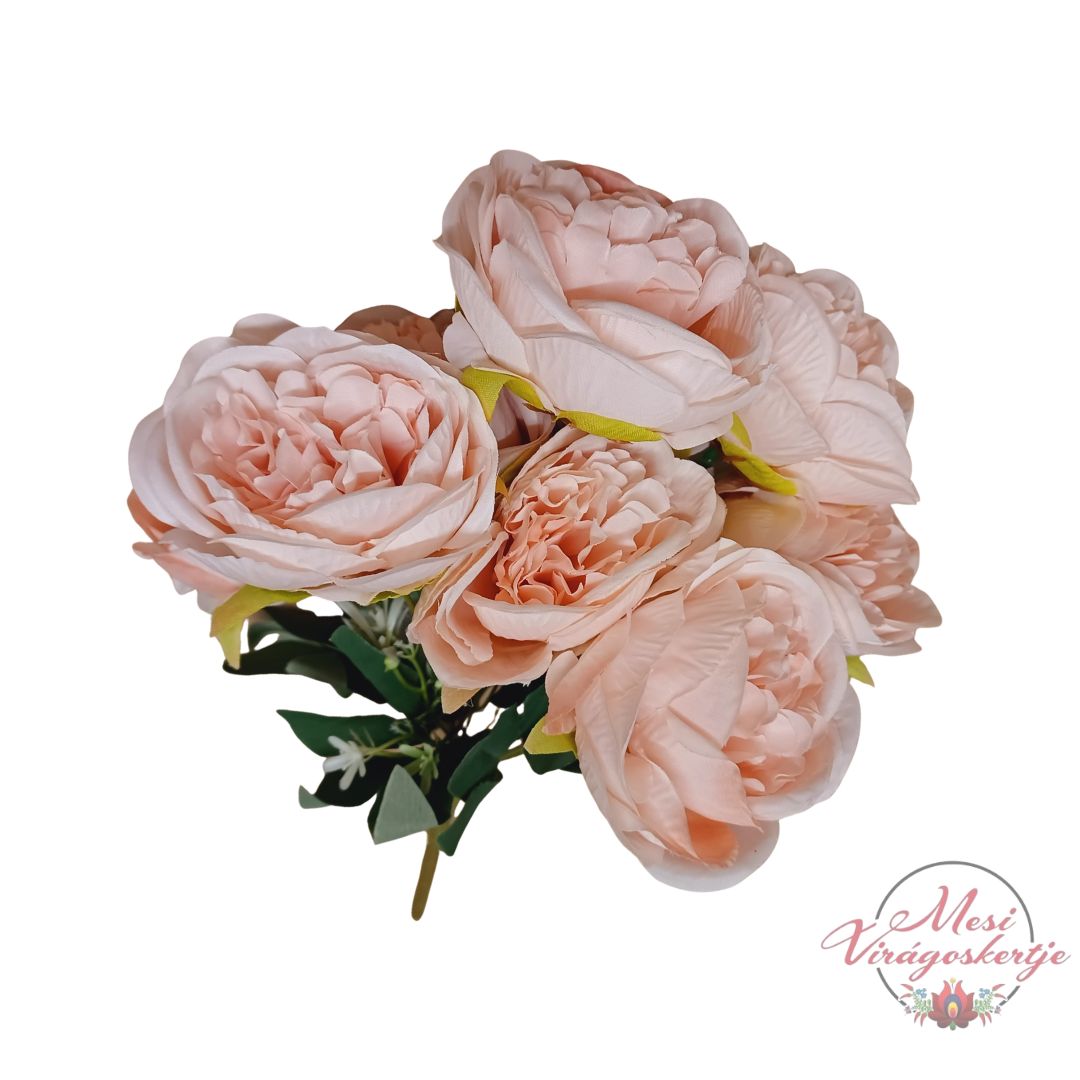 A selyem angol rózsa a klasszikus rózsa és a bazsarózsa látványvilágát ötvözi: nagy, gazdagon rétegzett szirmai természetes hatásúak és igazán különleges megjelenést biztosítanak. A virágfejek részletgazdag kidolgozása és harmonikus színvilága miatt kiváló választás otthoni, ünnepi vagy rendezvénydekorációkhoz.