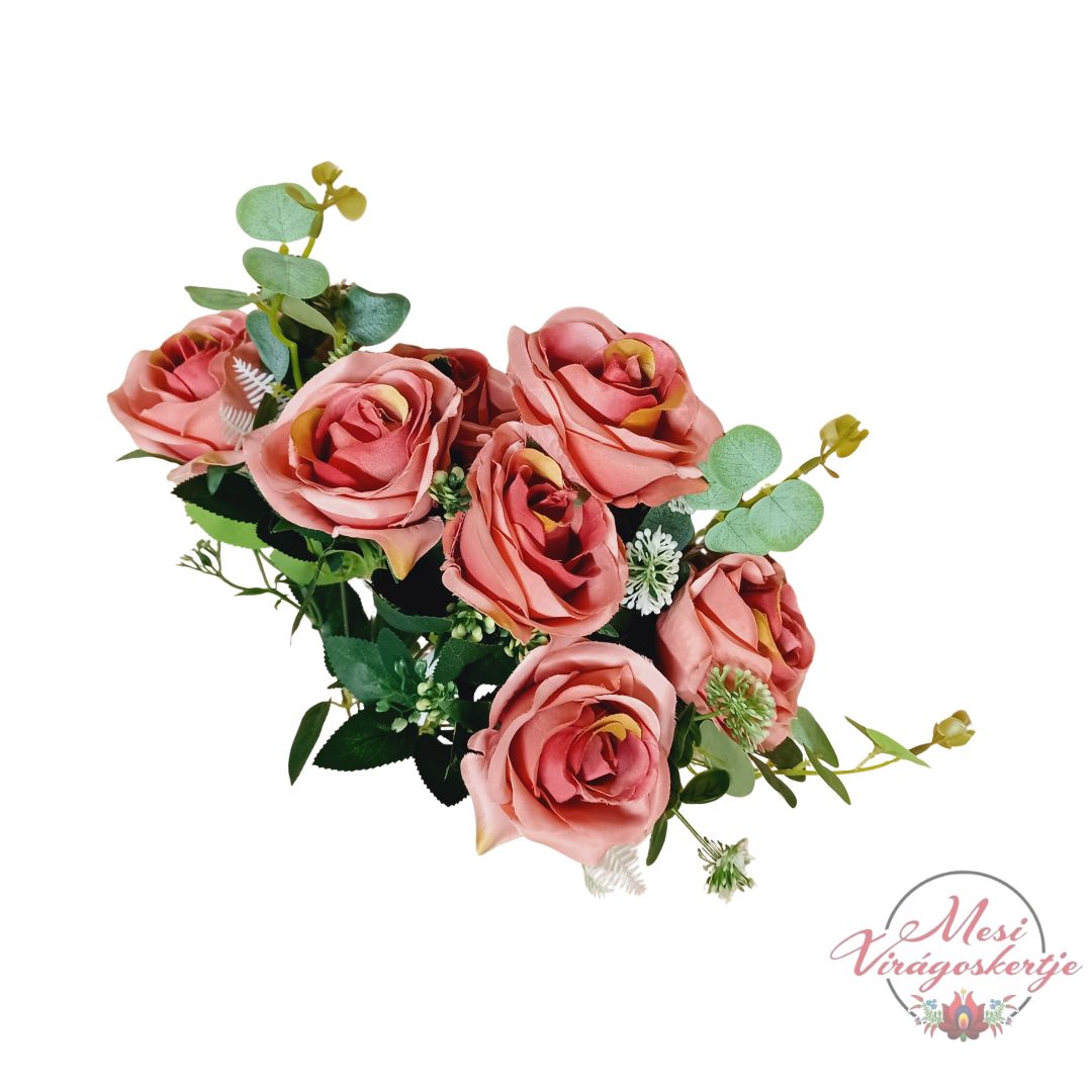 A többféle színváltozat lehetőséget ad arra, hogy a selyemrózsa önállóan vagy más selyemvirágokkal kombinálva is harmonikus összhatást teremtsen. Illusztrációs termékként kiváló inspirációt nyújt egyedi virágkompozíciók, koszorúk és alkalmi dekorációk megtervezéséhez.