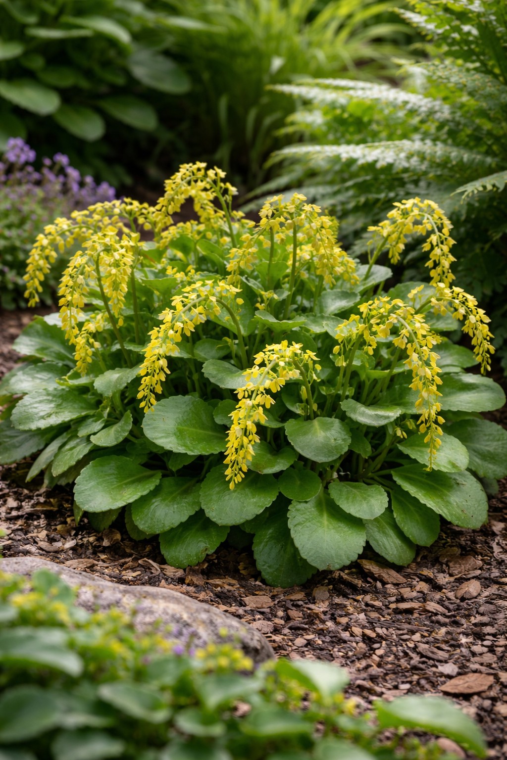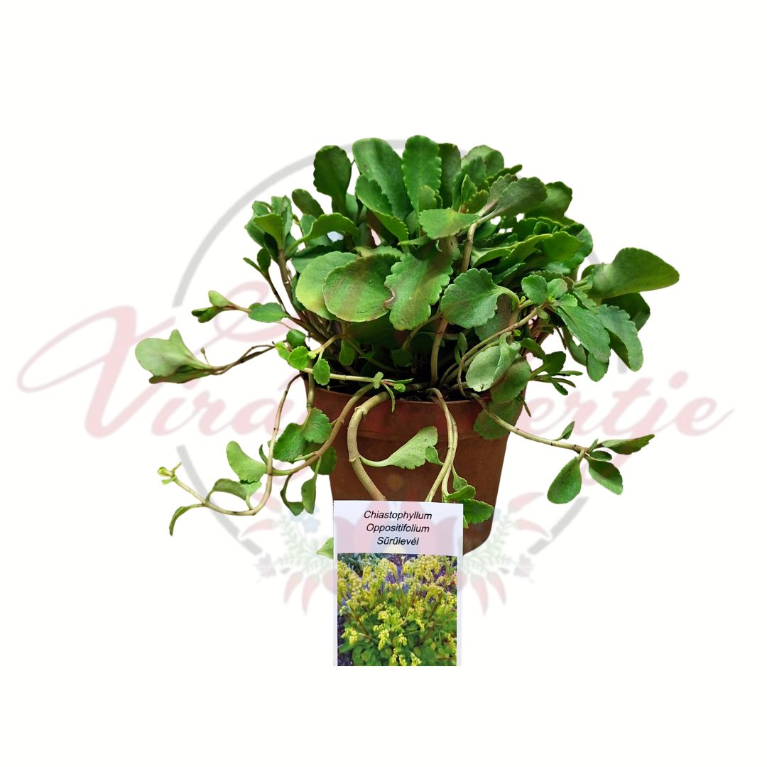 A sűrűlevél (Chiastophyllum oppositifolium) egy különleges megjelenésű, alacsony termetű évelő növény, amely húsos, kerekded leveleivel és lecsüngő hajtásaival díszíti a kert árnyékosabb részeit. Természetes hatású, terülő habitusával kiváló talajtakaró növény.