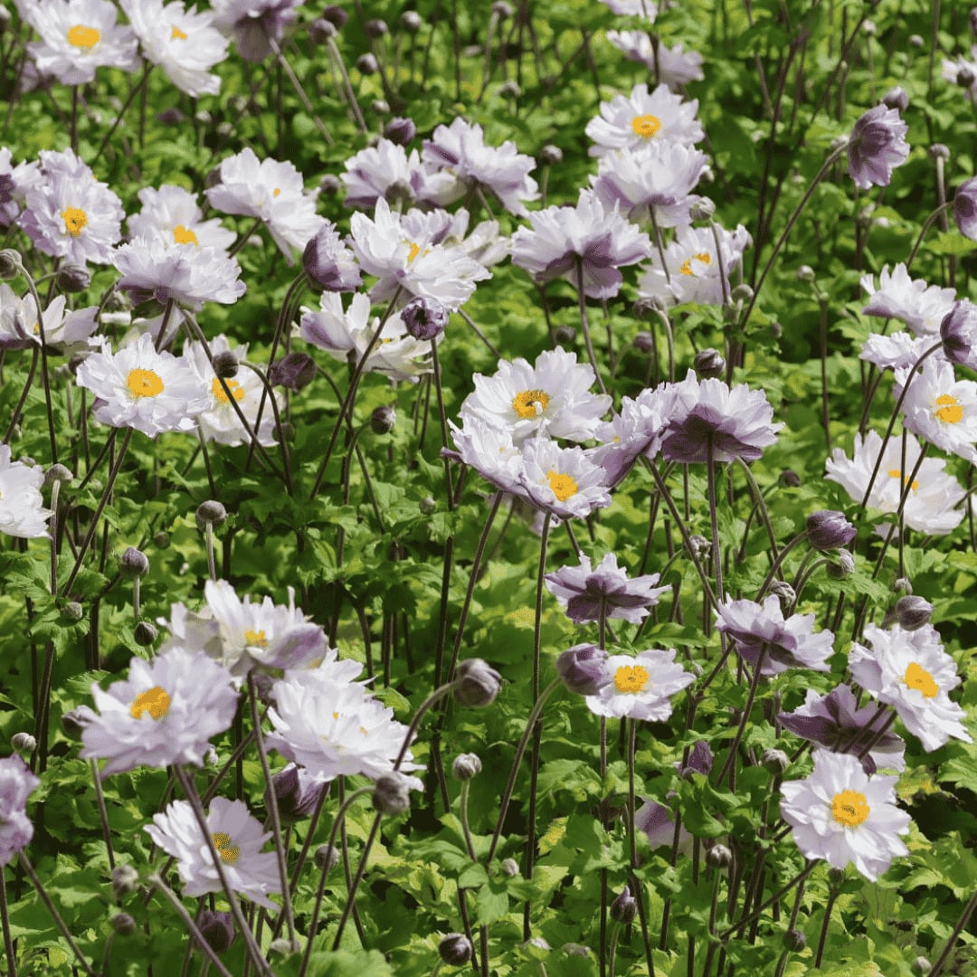 Az Anemone ‘Frilly Knickers’ igazi romantikus különlegesség. Fodros, félig telt virágai fehér színűek, a szirmok fonákján finom, halvány orgonalila árnyalattal, amely könnyed, légies megjelenést kölcsönöz a növénynek. Májustól egészen őszig hozza virágait, így hosszú ideig díszít. Jól mutat erdőszéli hangulatú kertekben, árnyalt évelőágyásokban vagy akár nagyobb konténerben is. 30–60 cm magasra nő, szélessége kb. 30–40 cm. Télálló, de hidegebb teleken érdemes takarni vagy védett helyre ültetni. Kifejezetten jól társítható puhább textúrájú, árnyliliomos vagy díszfüves beültetésekhez.