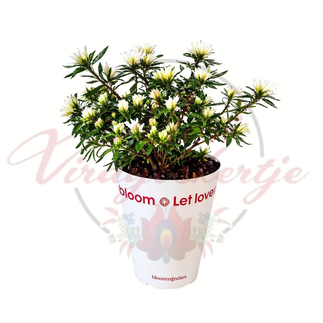 A szobai azálea fehér virágú Azalea indica kompakt növekedésű, gazdagon virágzó szobanövény, amely elegáns megjelenésével különleges hangulatot teremt a lakásban. Finom, fehér virágai sűrűn borítják a növényt, így virágzás idején rendkívül látványos.