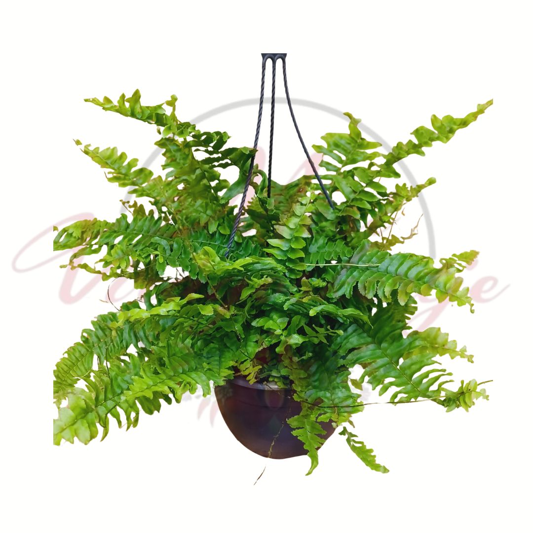 A szobapáfrány akasztós cserépben klasszikus, dús megjelenésű szobanövény, amely friss, természetes hangulatot teremt bármely térben.