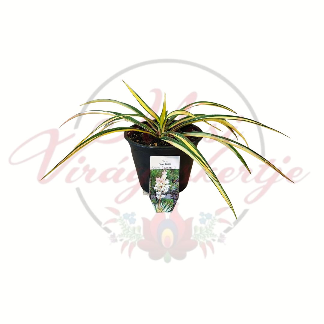 A Tarka levelű kerti pálmaliliom (Yucca filamentosa ‘Color Guard’) egy különleges megjelenésű, örökzöld dísznövény, amely egzotikus hangulatot visz a kertbe.