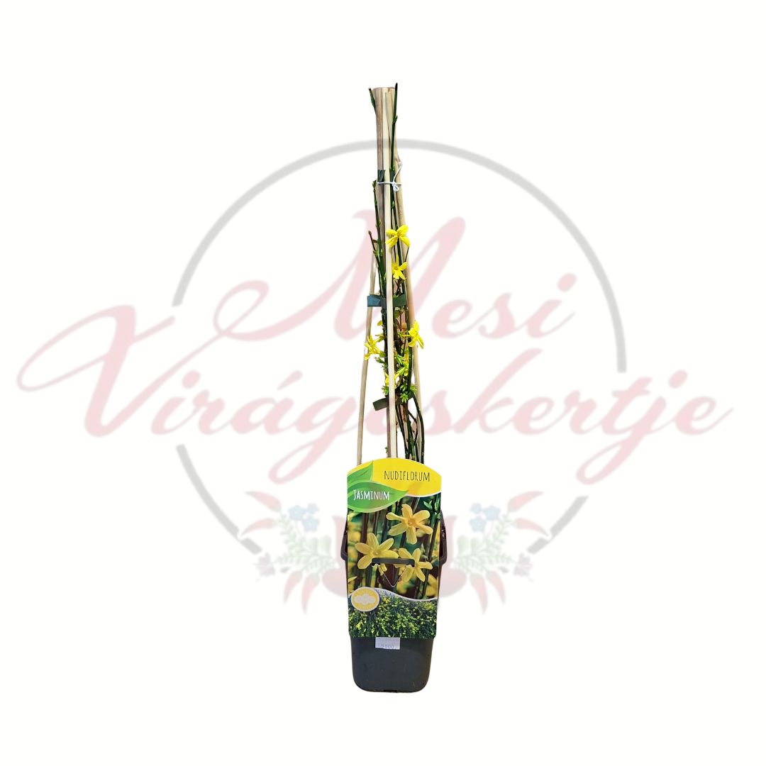 A téli jázmin Jasminum nudiflorum növénytámaszon nevelt futó díszcserje, amely korán nyíló sárga virágaival már a tél végén és kora tavasszal díszíti a kertet.