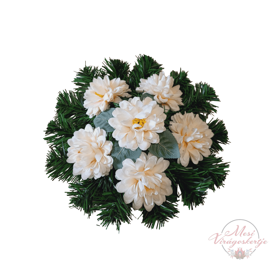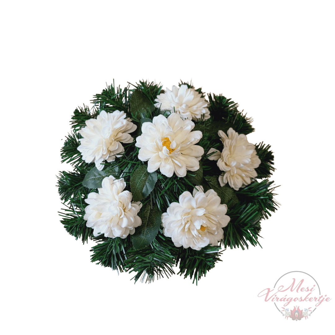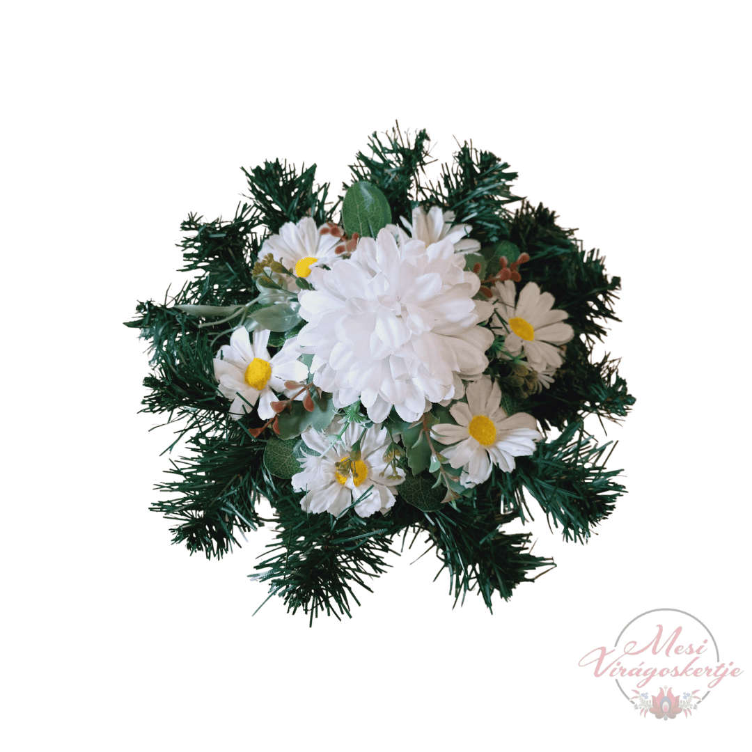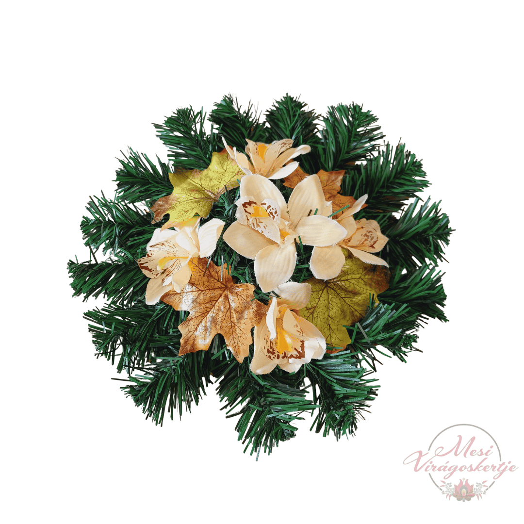 A Többféle 28 cm-es műkoszorú igényesen kidolgozott, természetes hatású kegyeleti dísz, amely műfenyő alapra és élethű virágkompozícióra épül. A harmonikus színek és a részletgazdag virágdísz méltó megemlékezést biztosítanak szeretteink számára. Tartós, gondozásmentes és időjárásálló megoldás temetői elhelyezésre vagy otthoni emlékhelyre.