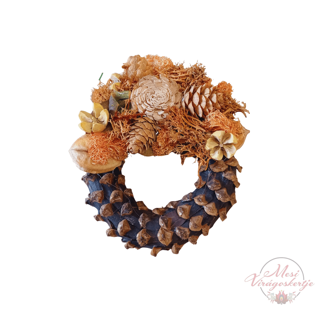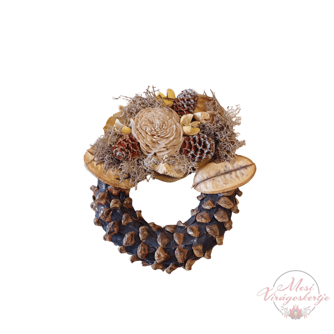 A Többféle toboz alapú kopogtató (13 cm) kézzel készült, természetes tobozokból és finom szárazvirág díszekből összeállított dekoráció. Természetes barna és bézs árnyalatai meleg, őszi hangulatot árasztanak, így tökéletes választás ajtóra, ablakba vagy falra is. Tartós, gondozásmentes kézműves dísz, amely időtálló eleganciát visz otthonodba.