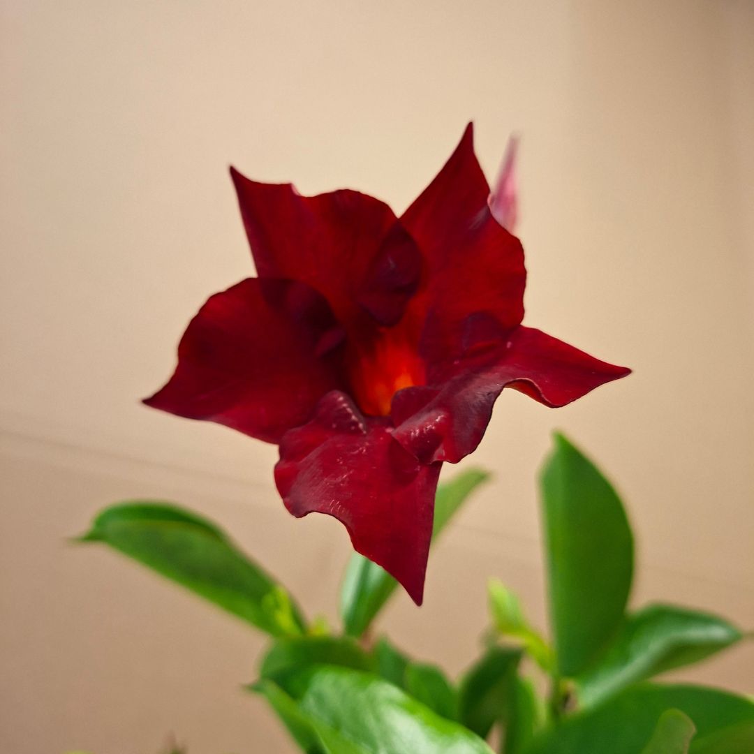 A tölcsérjázmin ‘Rio Deep Red’ (Dipladenia ‘Rio Deep Red’) látványos, egzotikus megjelenésű dísznövény, amely fényes zöld leveleivel és mélypiros tölcsér alakú virágaival különleges hangulatot teremt a kertben vagy a teraszon.