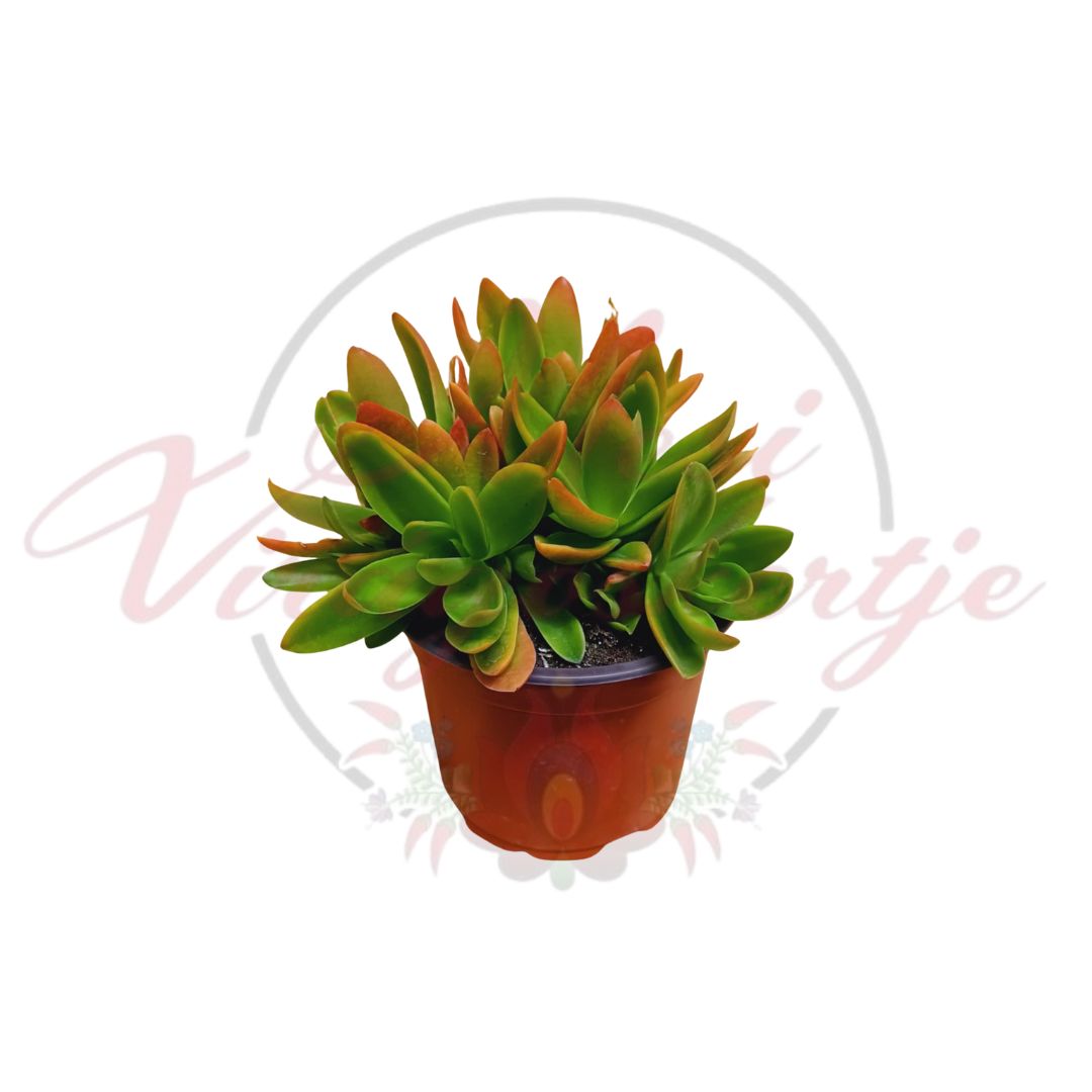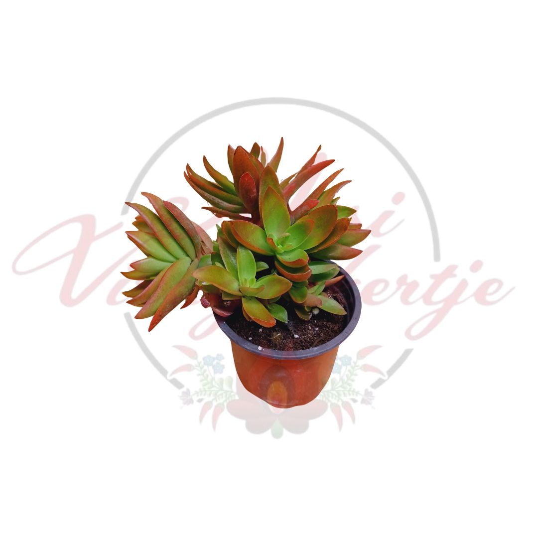 A tűzpozsgafa (Crassula ‘Campfire’) egy igazán különleges megjelenésű pozsgás növény, amely kompakt formájával és intenzív színeivel azonnal magára vonja a figyelmet. Húsos, lándzsa alakú levelei alapvetően zöld színűek, de megfelelő fényviszonyok mellett élénk narancsos, pirosas tónusokat öltenek, innen ered a „campfire”, azaz tábortűz elnevezés is.